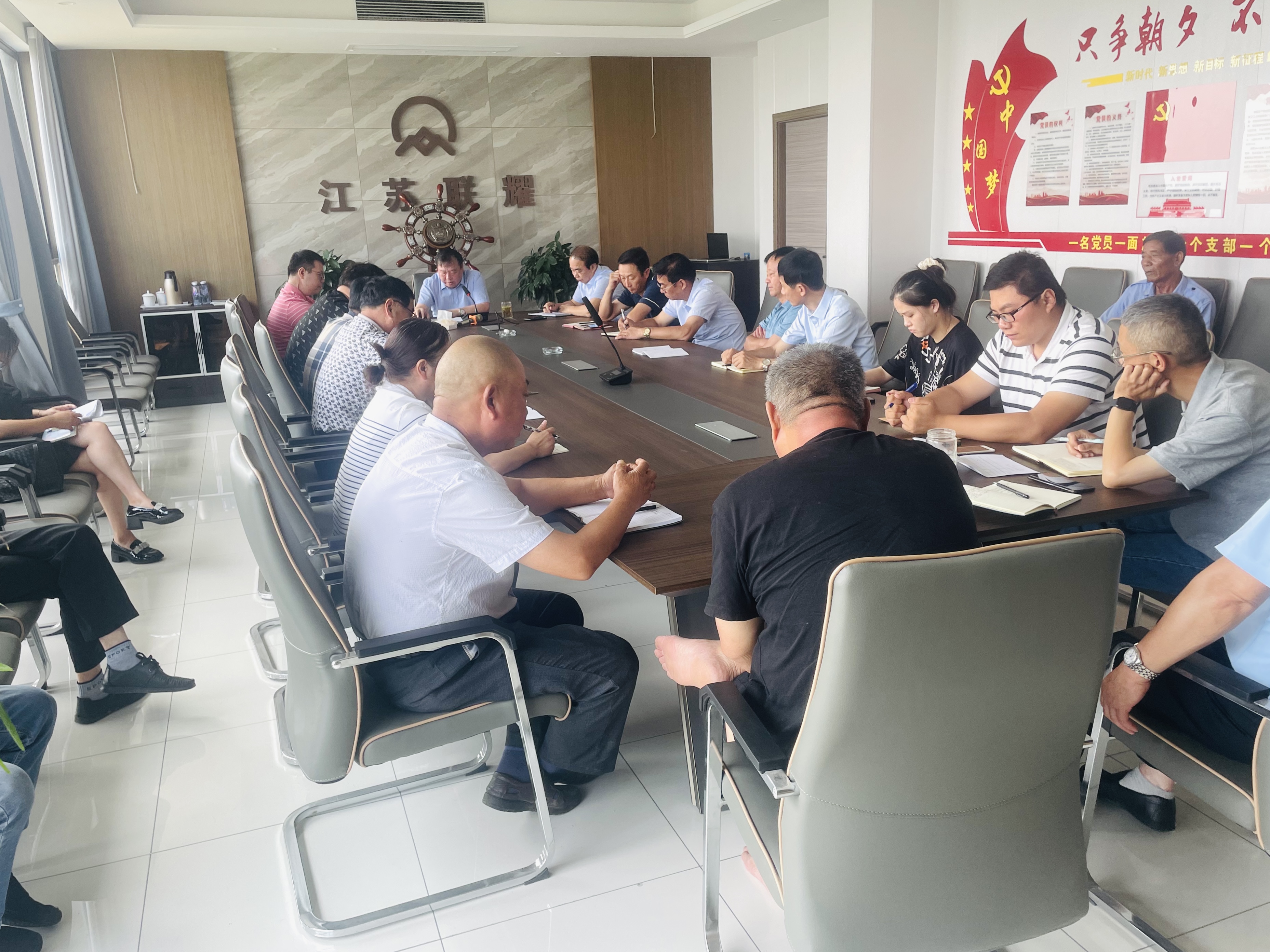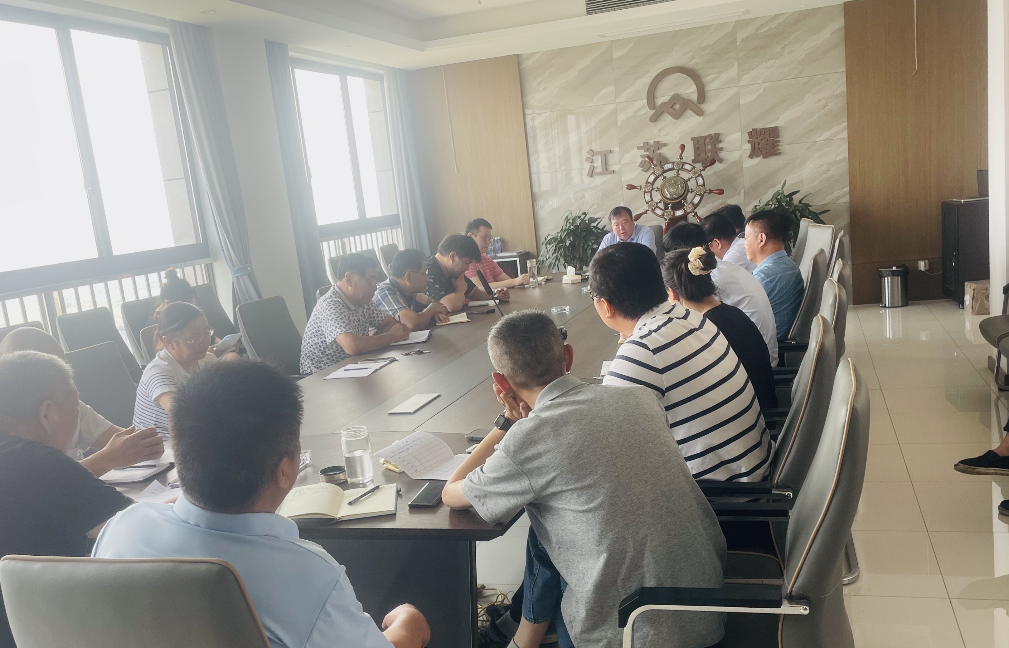 为了全面总结公司2022年上半年度经营工作情况,发现工作中存在的问题、解决问题,并进一步科学合理制定下半年工作计划,2022年7月13日,江苏联耀建筑装备有限公司在公司会议室召开2022年年中总结会议。江苏联耀董事长邱训琪、总经理邱建腾及相关部门的负责人共同参加了此次会议。